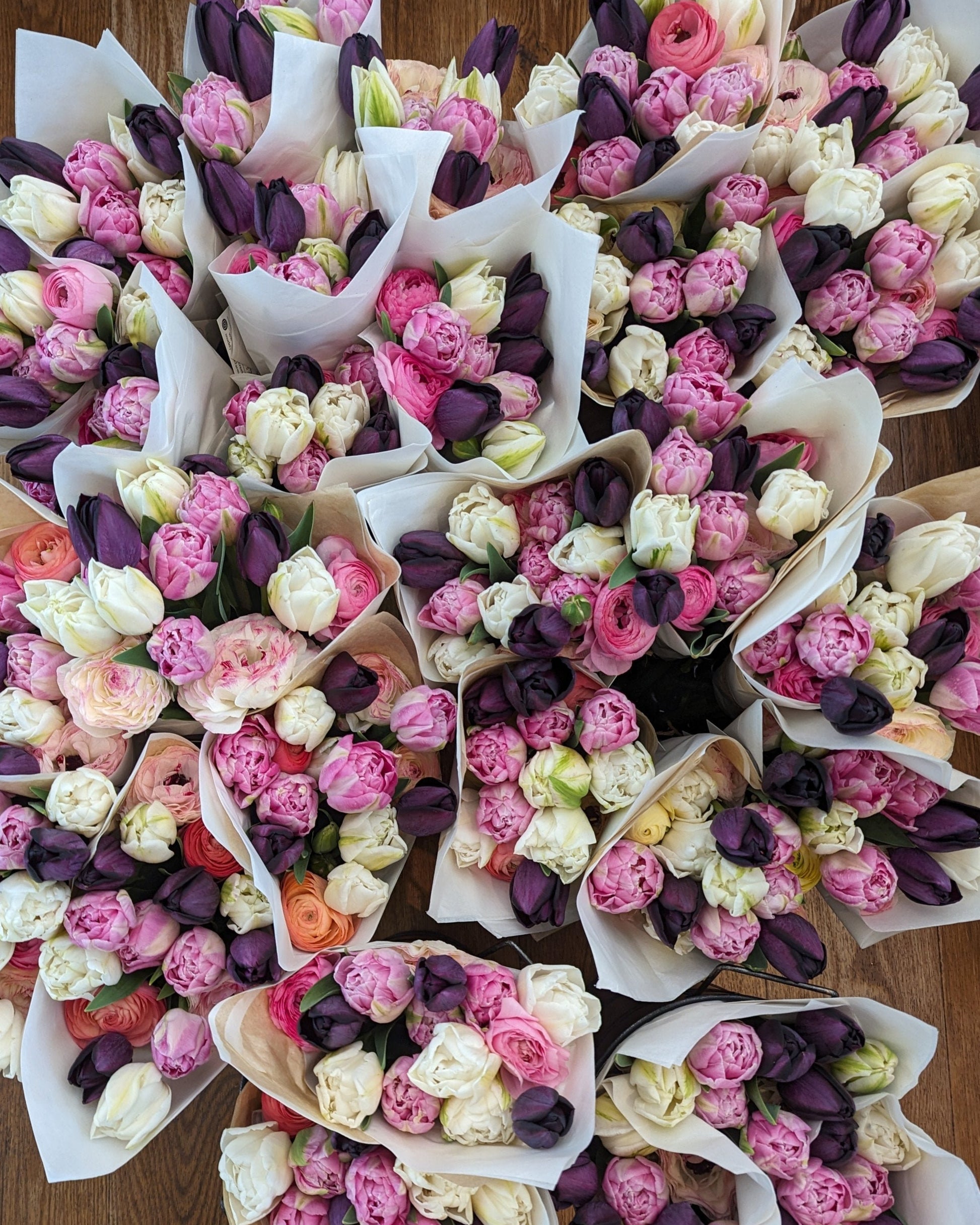 Each season we choose varieties of tulips and narcissus based on a color palette so that making bouquets is a breeze! This mix includes each of the varieties we're growing this year so you can make your own bouquets. You might notice that the colors repeat - this is because the varieties have different blooming windows, so regardless of how the spring weather cooperates, the bouquets will always be coordinated.